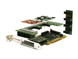 Each A200 can support up to 6 cards, including the base PCI card, for a total of 12 slots or 24 FXS/FXO available ports.