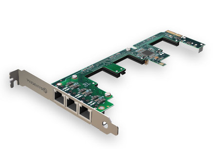 A single PCI Express slot hosts the connection for up to 4 ports and ensures common synchronous clocking for all channels with no signalling issues.