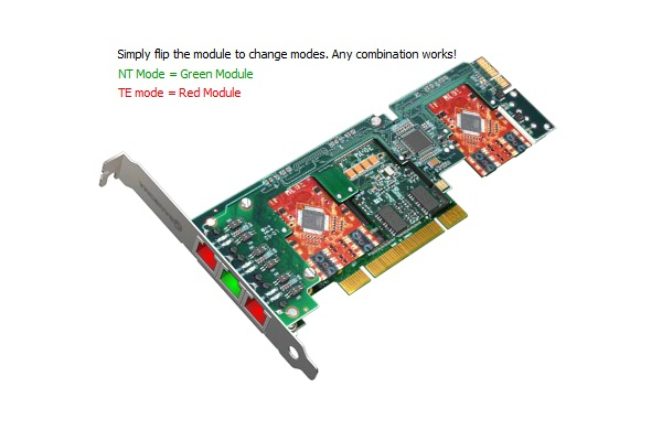 • From 2 to 24 ports are supported. Mix TE and NT modes, as required. Changing modes requires no jumpers — simply invert the colour-coded module